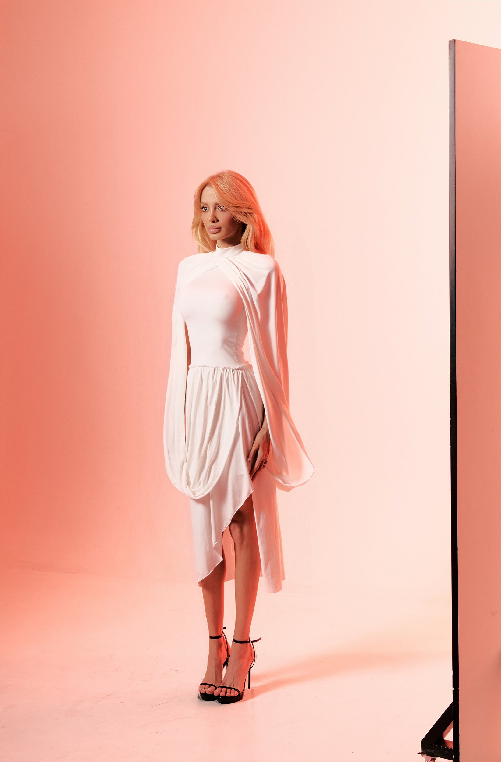 Vestido Midi Draped Cape – A peça que transforma qualquer ocasião em um momento inesquecível
